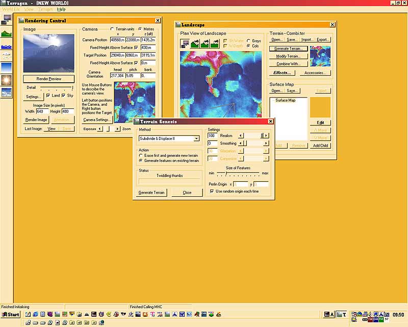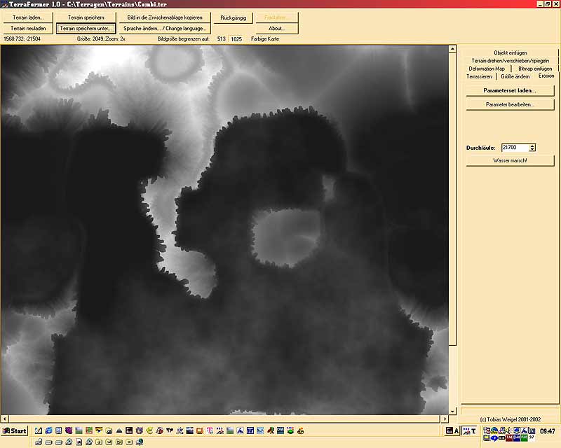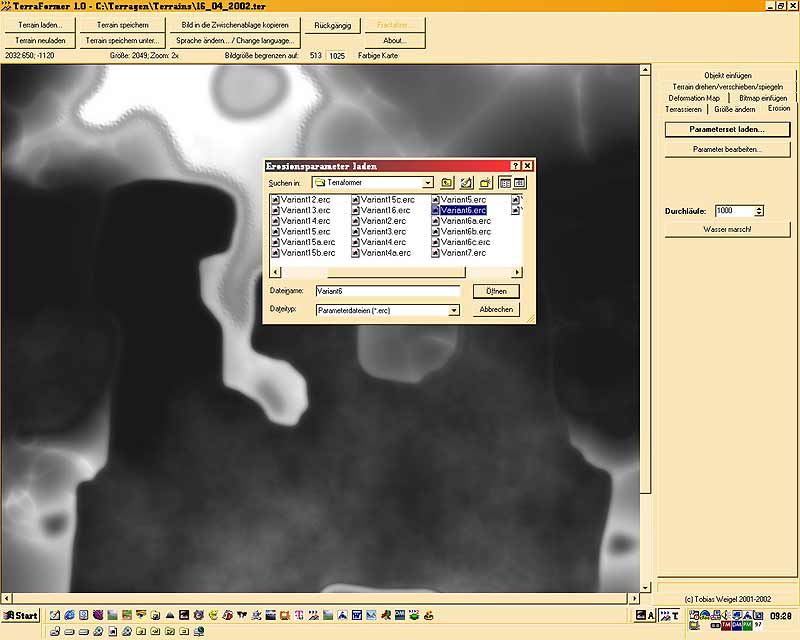 jetzt das Gelände abspeichern und TERRAGEN starten. Danach