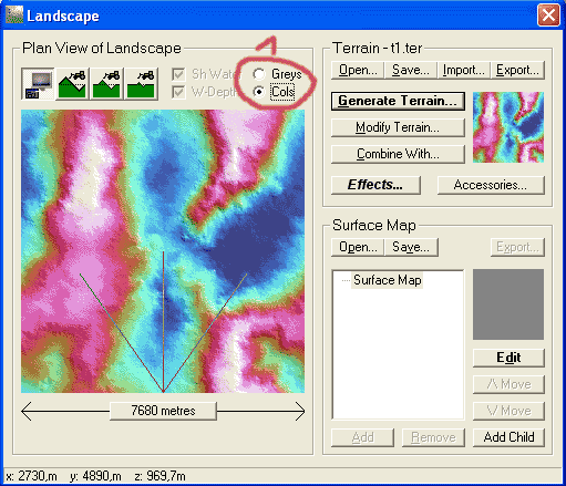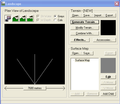 geschaltet. Dies ist die Grundeinstellung beim Start von Terragen.