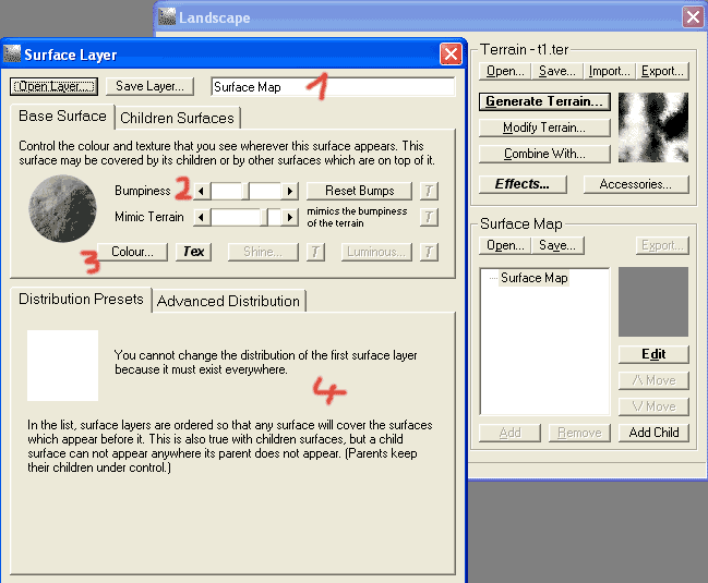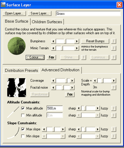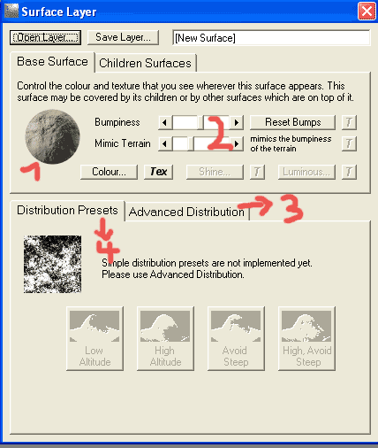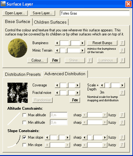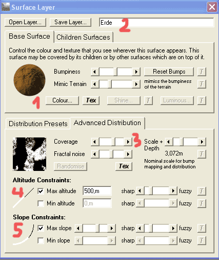 des Surface Layers. Unter "2" kannst Du die Rauheit
