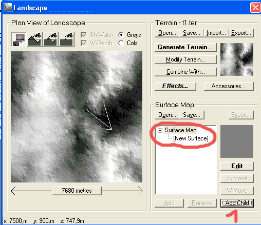 klicken wieder auf "Add Child" im Landscape Fenster,