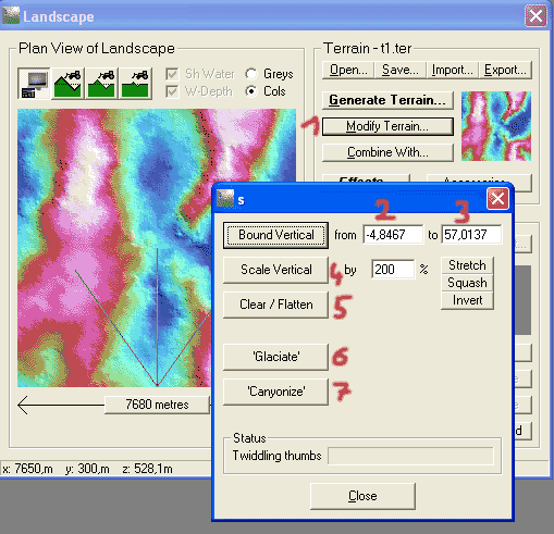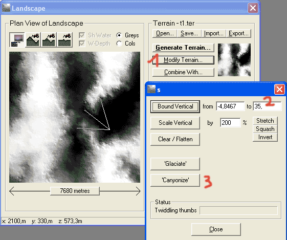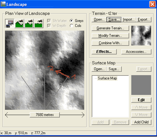 klickst Du (wieder zurück im Landscape Fenster in Terragen)