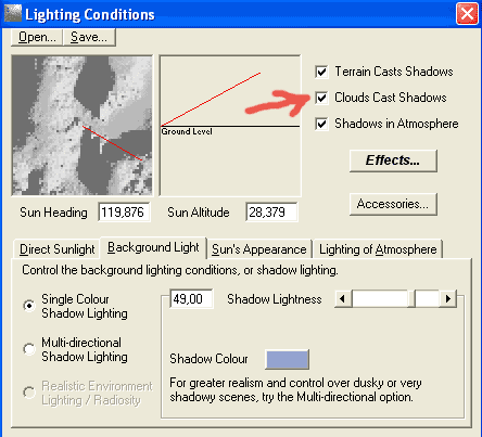 Mit eingeschaltetem "Clouds Cast Shadows" (zu findem