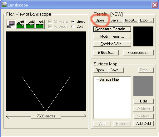 wählst Du das eben gespeicherte Terrain aus. Und dann siehst