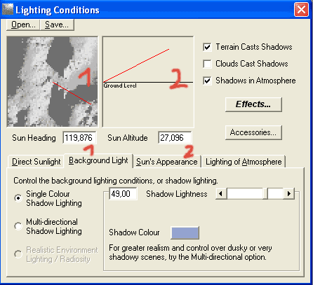 im "Lighting Conditions" Fenster, siehe Bild) können