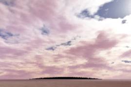 golden october (c) 2001 Brunker, Kleiner, Basinski Dieses Gemeinschaftwerk ist von drei Künstlern, Peter Kleiner, Martin Brunker und mir selber entworfen worden. Während Peter Kleiner für das Terrain und das Wasser verantwortlich war, Martin Brunker die Surface Map gestaltet hat, habe ich mich um Himmel und Athmosphäre gekümmert. Betrachtet man den Wolkenhimmel genau - im Lichte des weiter oben gesprochenen Bildes - so wundert man sich, wie das Land überhaupt so gut beleuchtet werden konnte. Nun, in Szenen wie dieser, wenn der Himmel völlig verhangen ist, muß man in Terragen einen Kompromiß schließen: man verzichtet auf volumetrisches Licht. Die Option "Clouds cast shadows" MUSS bei solchen Szenen ausgeschaltet bleiben. Terragen gestattet leider nur entweder die Verwendung von volumetrischem- ODER Umgebungslicht. Es ist nicht wirklich schlimm, allerdings besteht in dieser Einstellung keine Chance auf einen einzigen Lichtstrahl. Es gibt aber in Bezug auf die Wolken noch einiges andere zu besprechen. Wie schafft man den Effekt, daß die Wolken golden glühen und dennoch größtenteils den Himmel schwärzen? Wie simuliert man den Wiederschein der blauen Athmosphäre im Schatten der Wolken? Wie erschafft man dieses mächtige Hervorquellen der Wolkenstrukturen? Machen wir es doch wie beim Beispiel vorher. Hier sind die verwendeten Settings: Clouds Dialogbox: Sky size: 10000 Altitude: 650 3D: checked Depth/Thickness: 8 Cloud color: 171, 98, 24 Darkening: 55% Density Contrast: 18 Density Shift: 39 Persistence: 50 Largest Cloud Size: largest setting Atmosphere