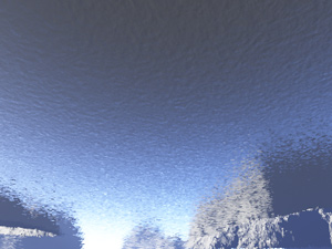 I am just going to explain this. Using any terrain, adjust the waterlevel to any value above the terrain. Position your camera under the water and look up. With “back face culling” turned off, you will see something like this: