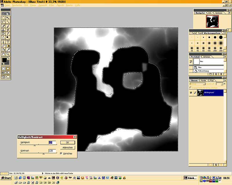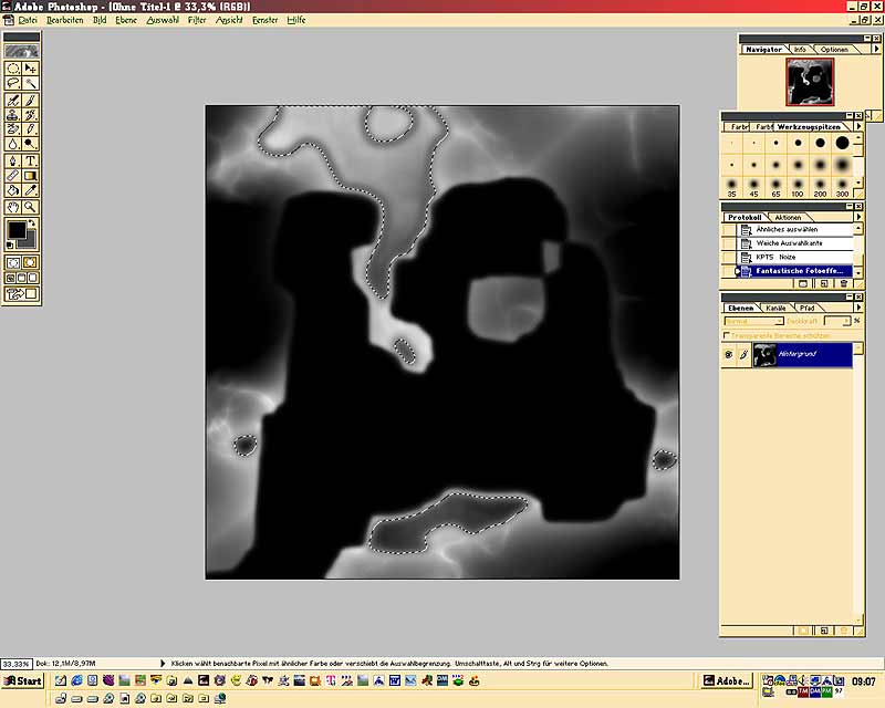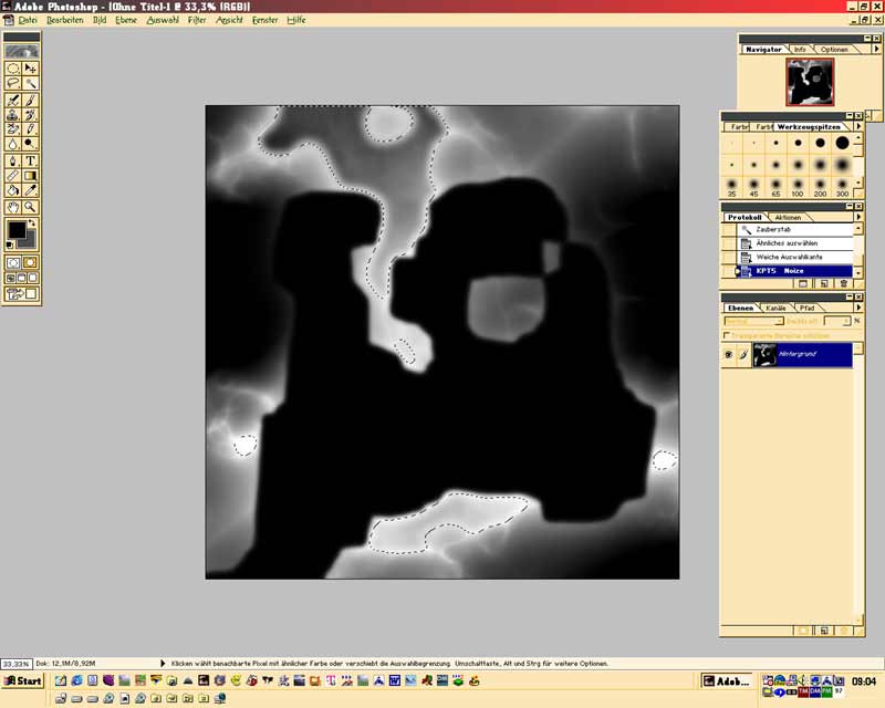 zu erzielen, auch den PhotoShop-eigenen Filter ‚Differenzwolken'