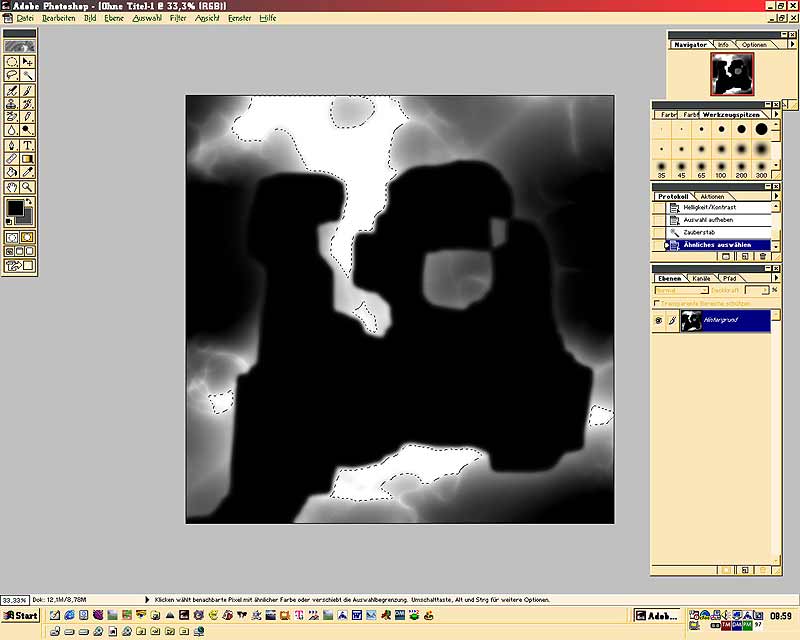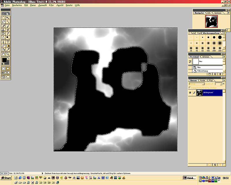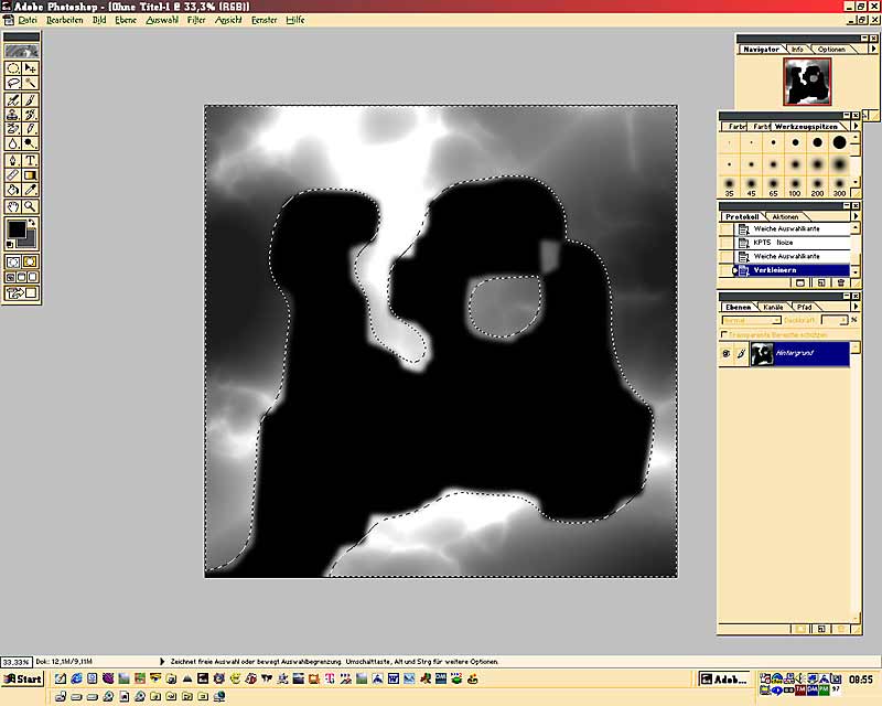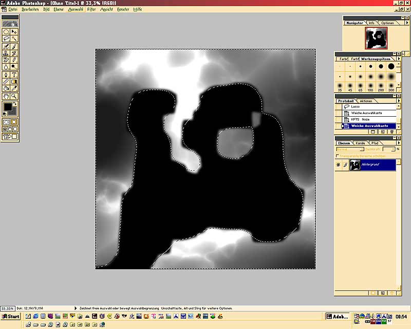 Auswahl zeigt, trotz einer weichen Auswahlmaske, noch ziemlich