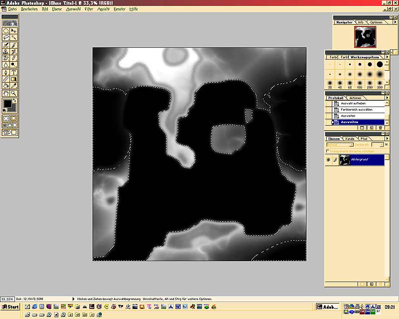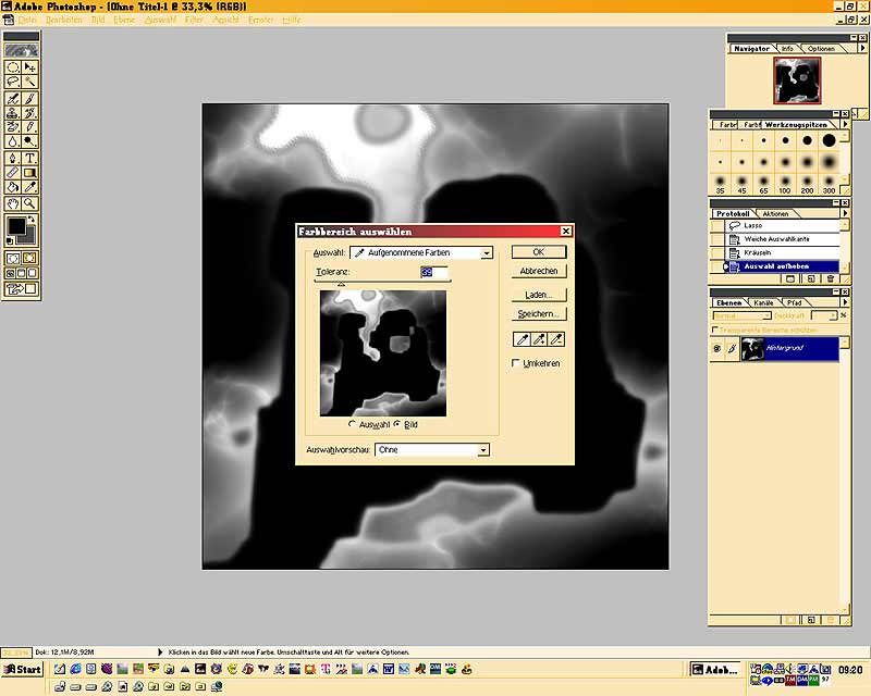 im Zentrum. Dazu wählen wir über, Auswahl/Farbbereich