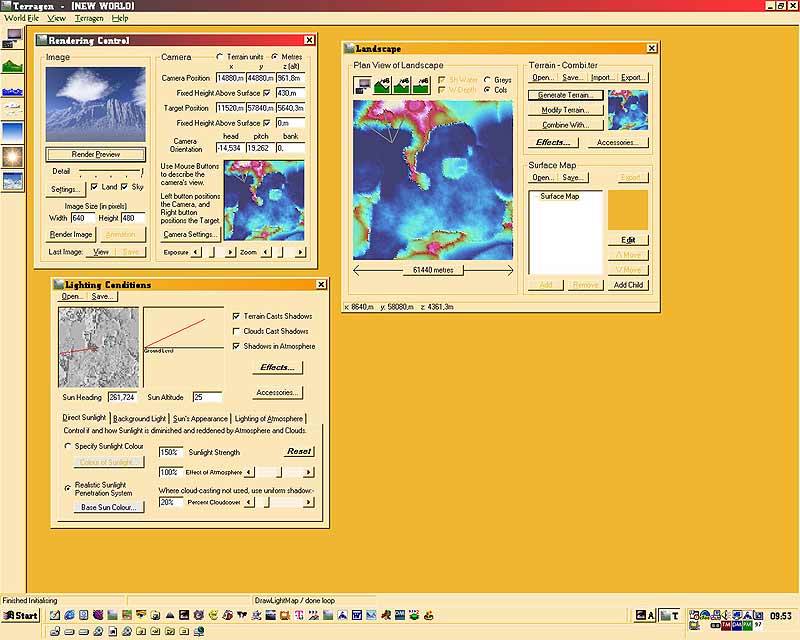 jetzt das Gelände abspeichern und TERRAGEN starten. Danach