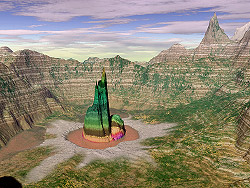 Mit diesem Bild wurde mein Nickname 'me109' und der Titel eines Bildes, der mit 'Alien Artifacts ..." anfing zu einem Synonym für überragende Qualität. Und das war recht so! ;o) Ich produzierte in dieser Phase eine ganze Reihe außergewöhnlicher Bilder, die Terragen an die Grenzen des bisher gezeigten brachten und neue, unglaubliche Horizonte eröffneten, die jedem dem Atem verschlugen...